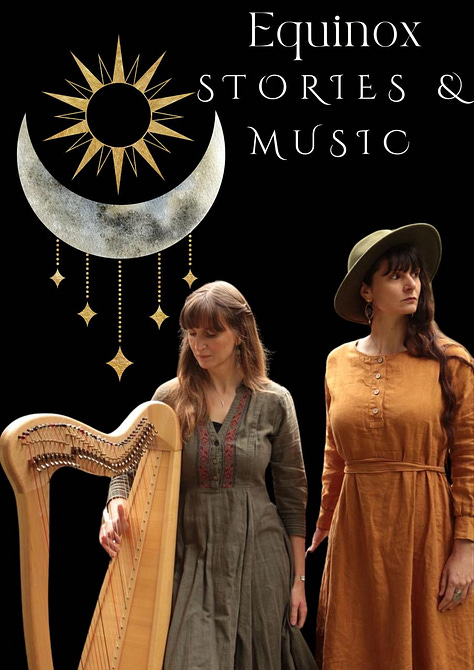If you feel called to, I hope you will join me for stories of women and spinning, stories of untamed women, (both online) and stories and music for the Spring Equinox in person in Scotland, with my dear friend Megan, who is a talented harpist.